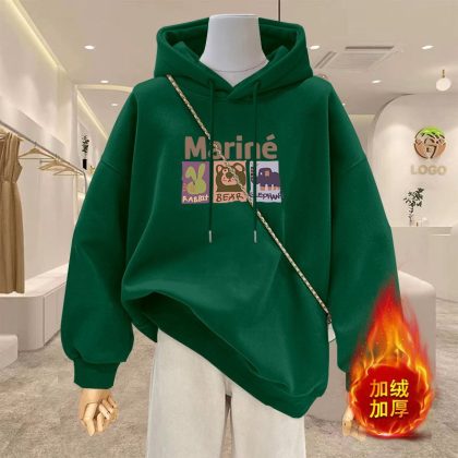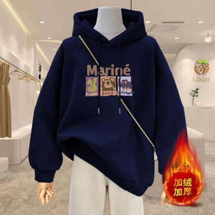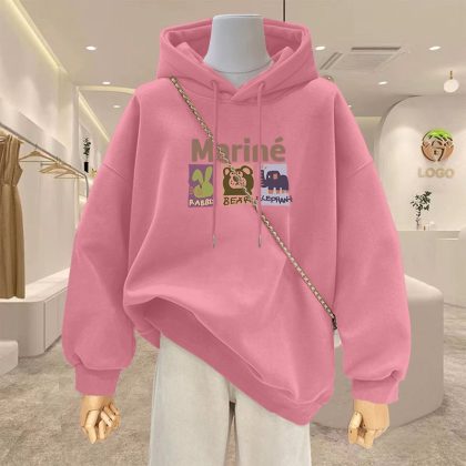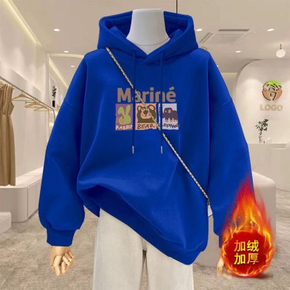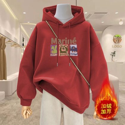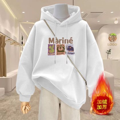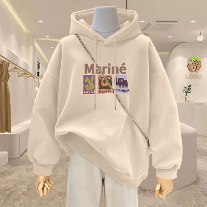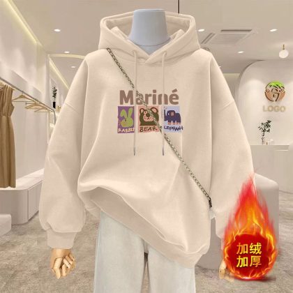 | nameOriginal | Spring 2024 New Cartoon Hooded apricot Sweatshirt Women's Reinforced Thickened plus size Women's Long Coat |