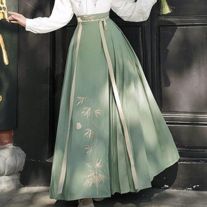 ربيع 2024 جديد النمط الصيني الرجعية طوق مطرزة تحسين Hanfu أعلى المطرزة الحصان الوجه تنورة قطعتين دعوى للنساء