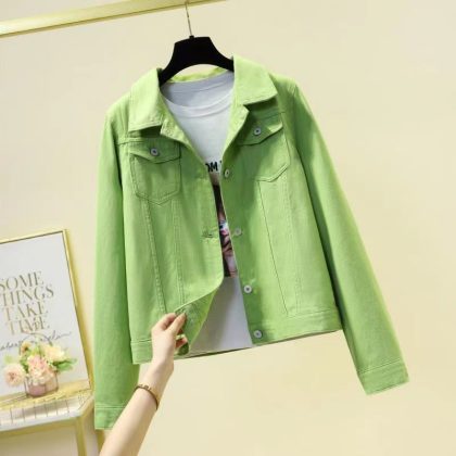 | nameOriginal | Spring and Autumn 2023 New Short Denim Top Korean-style Candy-colored All-match Long-sleeved Jacket Women's Large Size Jacket |