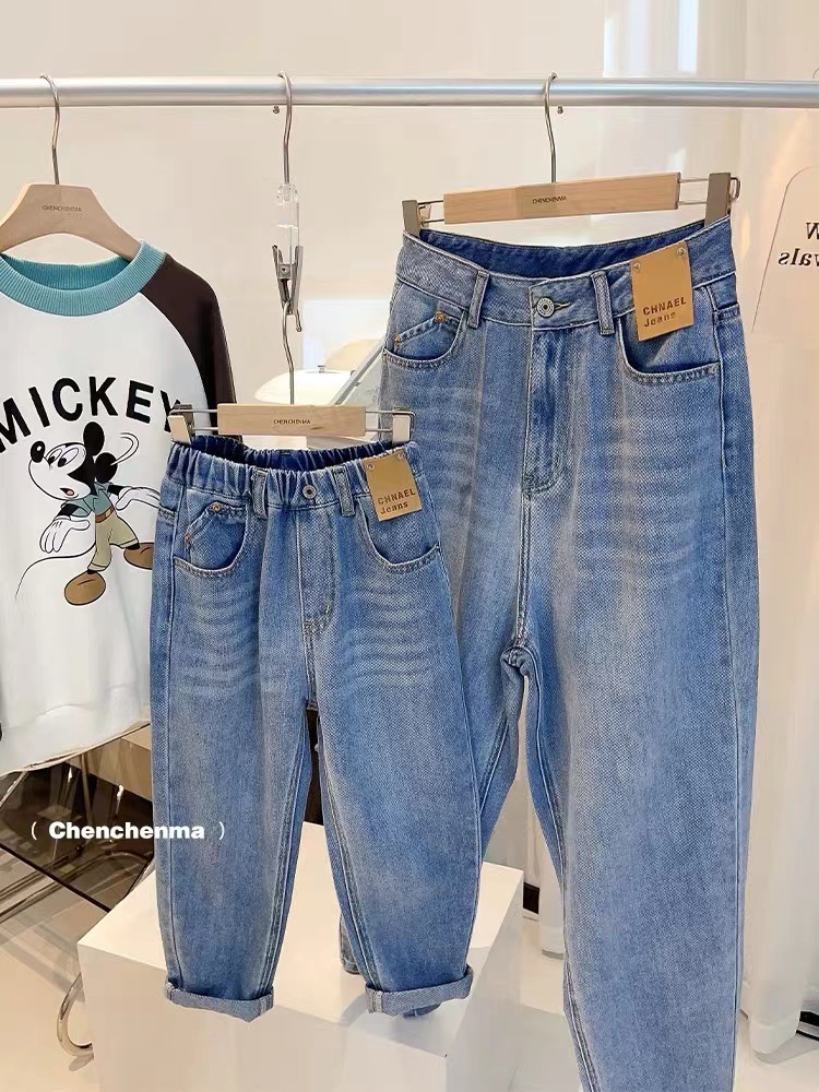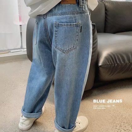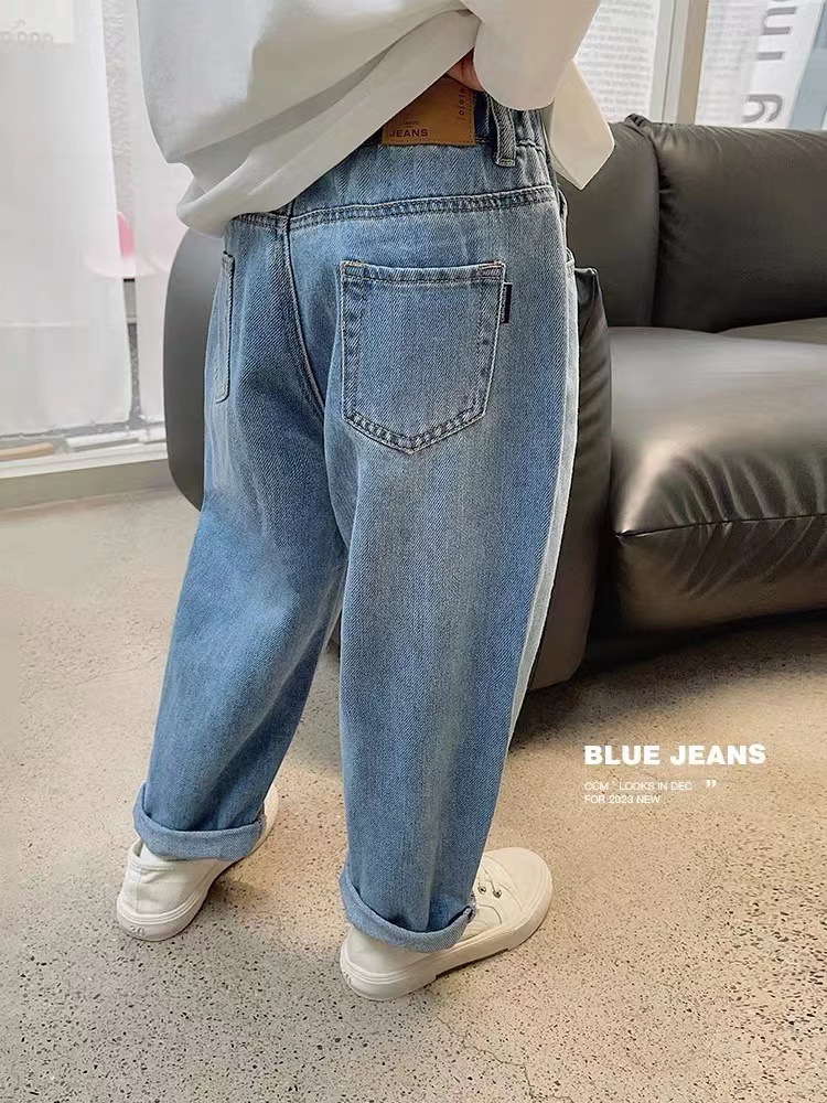 ربيع وخريف 2024 جينز فضفاض جديد للأولاد ناعم صغير ومتوسط ​​الحجم للأطفال غير رسمي واسع الأرجل سروال عصري للأطفال
