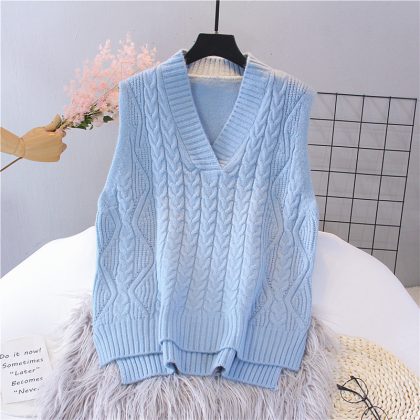 | nameOriginal | Spring and Autumn 2024 New V-neck Vest Knitted Women's Pullover Waistcoat Sweater Loose Retro Solid Color Sleeveless Vest |