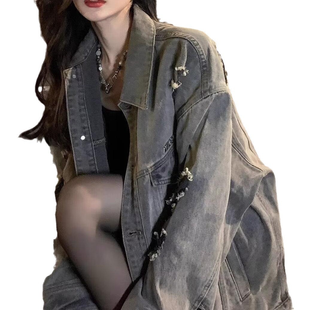 Spring and Autumn American Style Retro Denim Jacket Coat Women's 2023 New Loose All-match Washed Ripped Cardigan Top Trendy