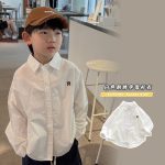 | nameOriginal | Spring and Autumn clothing South Korea medium and small boys boys' shirt long sleeve white embroidered letters classic shirt |