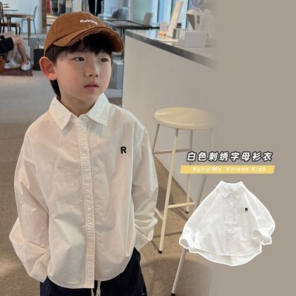 | nameOriginal | Spring and Autumn clothing South Korea medium and small boys boys' shirt long sleeve white embroidered letters classic shirt |
