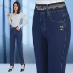 Spring and Autumn Elastic Waist Slim Fit Mom Pants