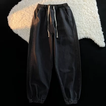 Spring and Autumn Japanese Style Loose Leg-tie Nine-Point Jeans