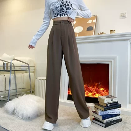 الربيع والخريف النمط الكوري السراويل عالية الخصر بطول الأرض