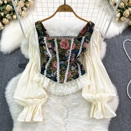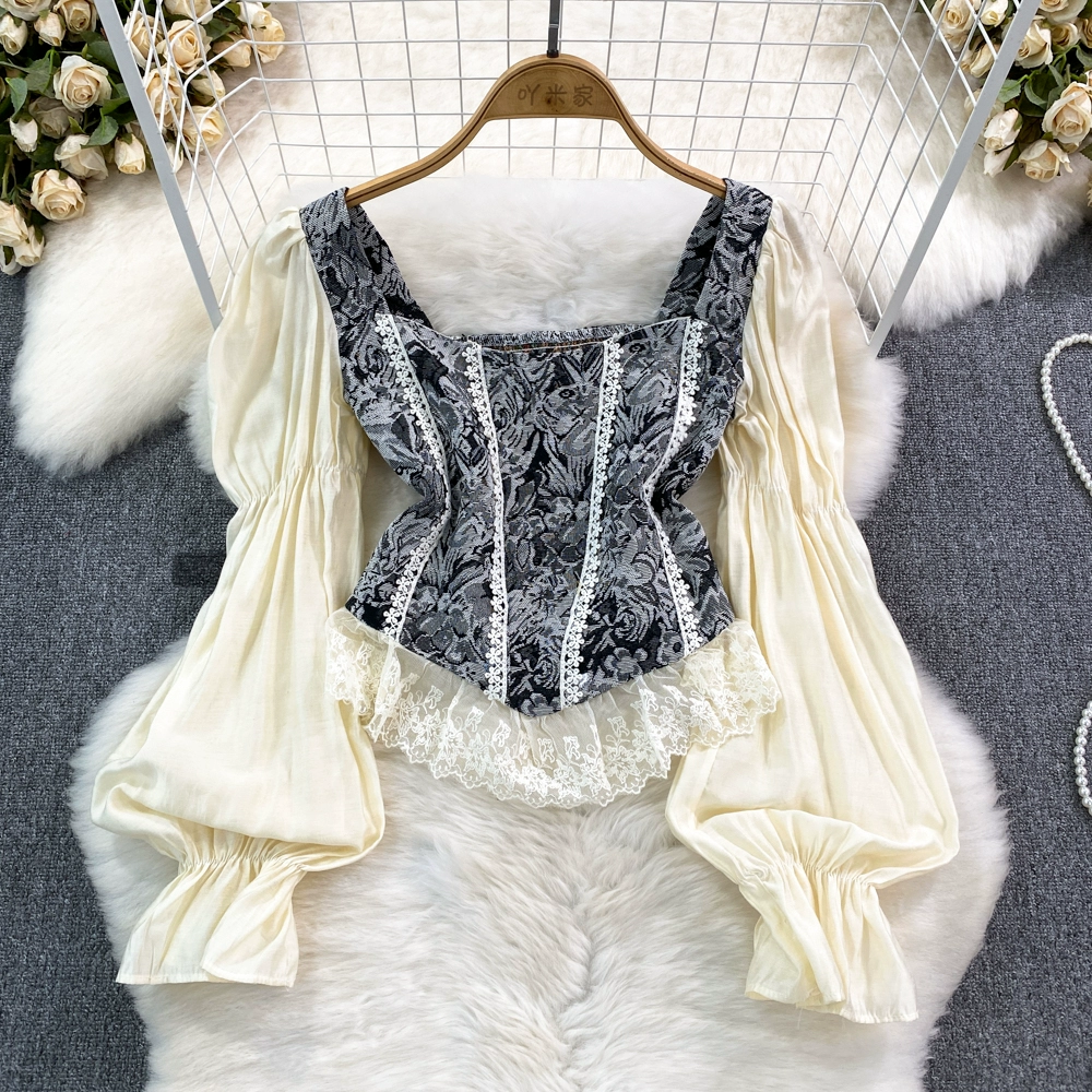 | nameOriginal | Spring and Autumn Lantern Long Sleeve Square Collar Jacquard Casual Pullover |