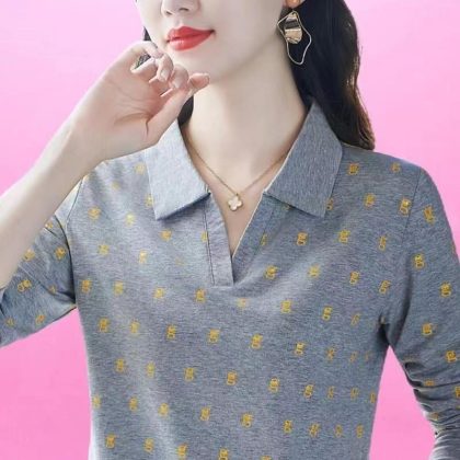 | nameOriginal | Spring and Autumn Long-sleeved T-shirt Women's 2024 New Fashion Base Shirt Loose Slim Flesh Covering Polo Shirt Top T-Shirt |