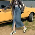 | nameOriginal | Spring and Autumn mid-length crotch-covering butt-covering denim skirt |