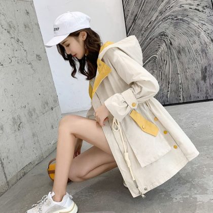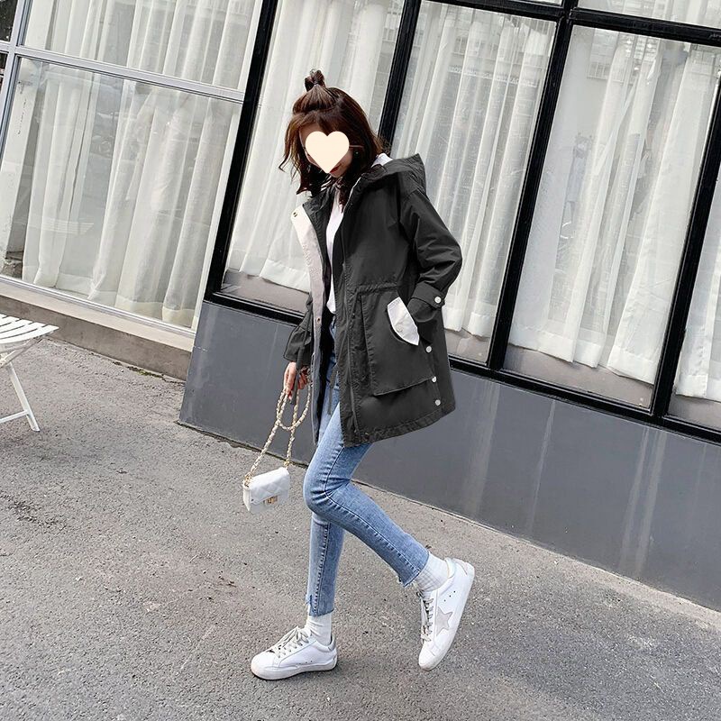 | nameOriginal | Spring and Autumn New Korean Style Casual Mid-length Coat Women's Hooded Loose Coat plus size Color-block Top for Students |