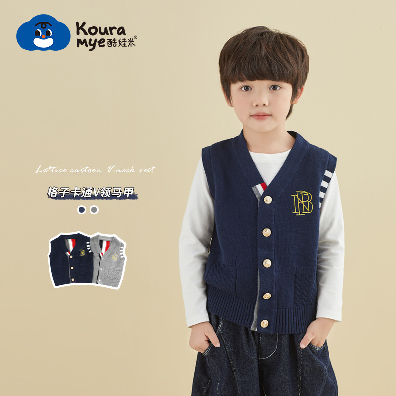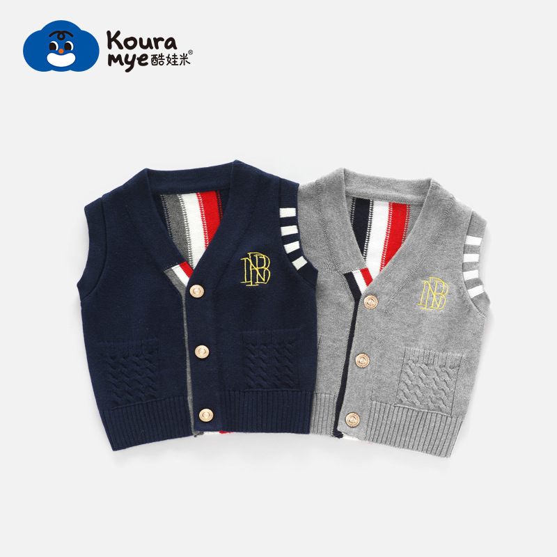 Spring and Autumn new small men's and women's treasure British Retro cardigan vest fashion Korean V-neck vest sweater