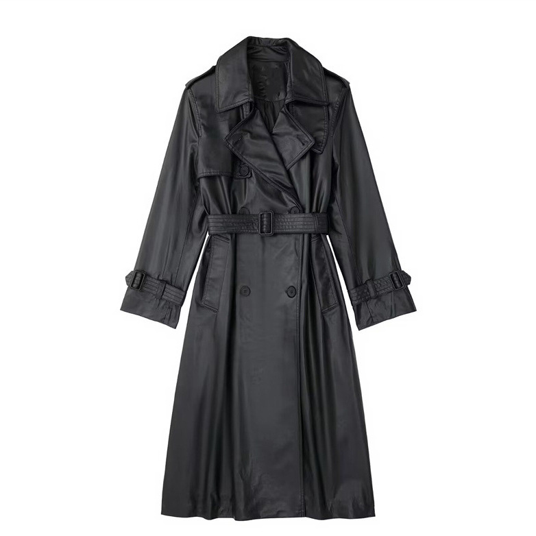| nameOriginal | Spring and Autumn New Women's Clothing European and American Retro Casual Black Long with Belt Fashionable All-match Imitation Leather Windbreaker Jacket |