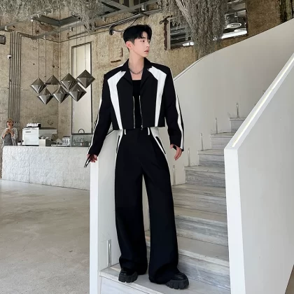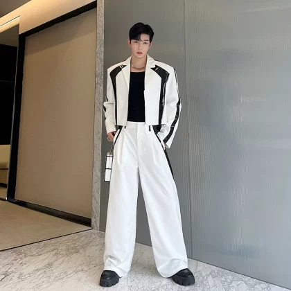 | nameOriginal | Spring and autumn niche black and white contrasting wide leg pants short suit |