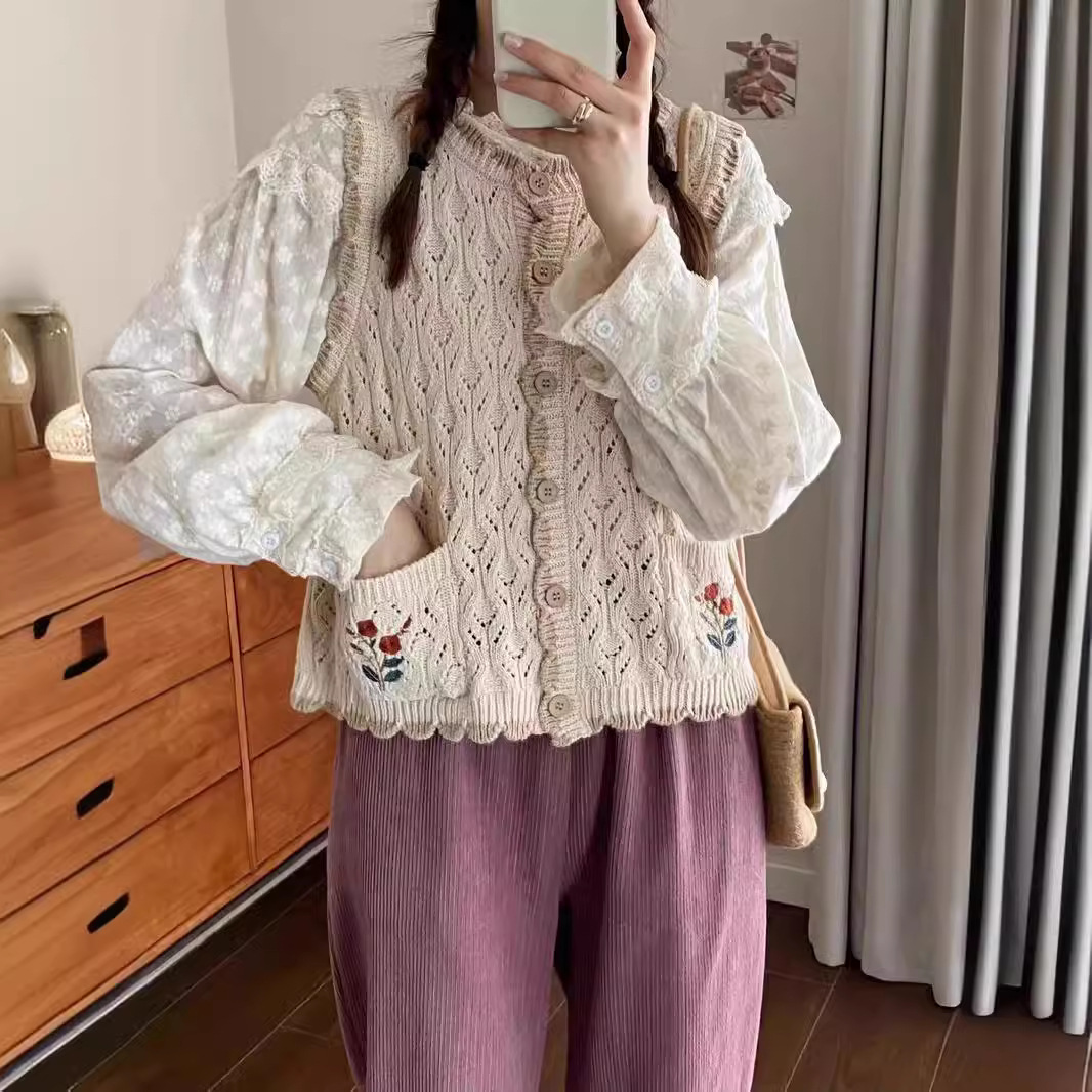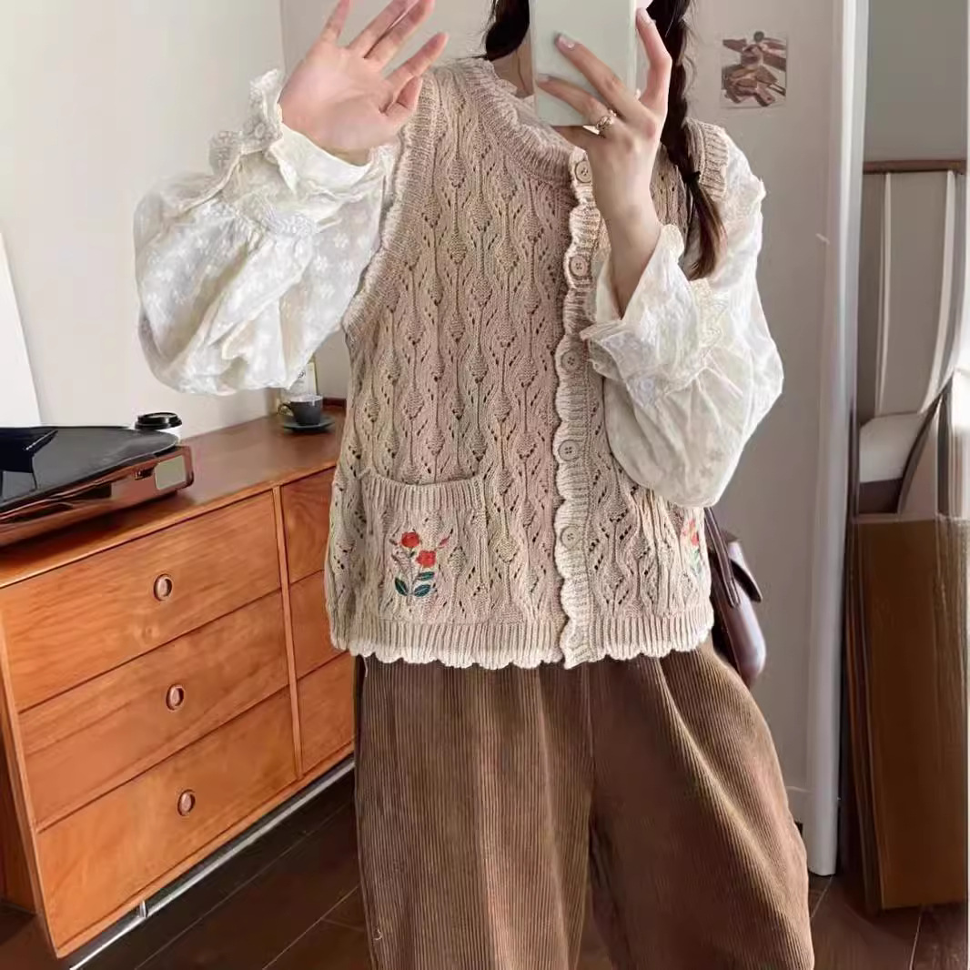 | nameOriginal | Spring and Autumn Outer Sweater Vest Vest Cardigan Artistic Casual Sleeveless Pocket Jacquard Knitted Vest Women's Outer Wear |