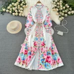 | nameOriginal | Spring and autumn retro palace style long-sleeved stand-up collar waist slimming single-breasted A-line positioning printed dress |