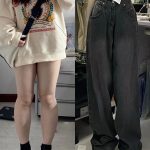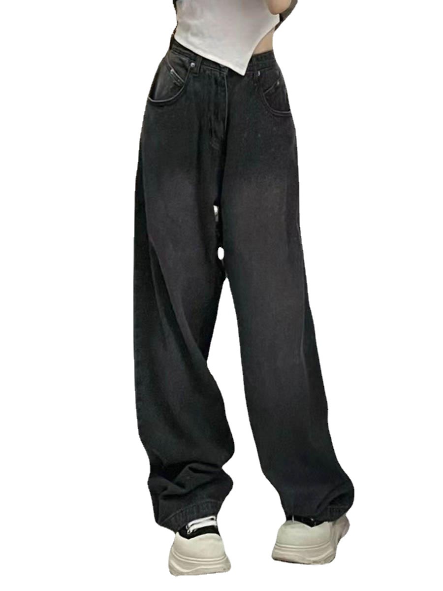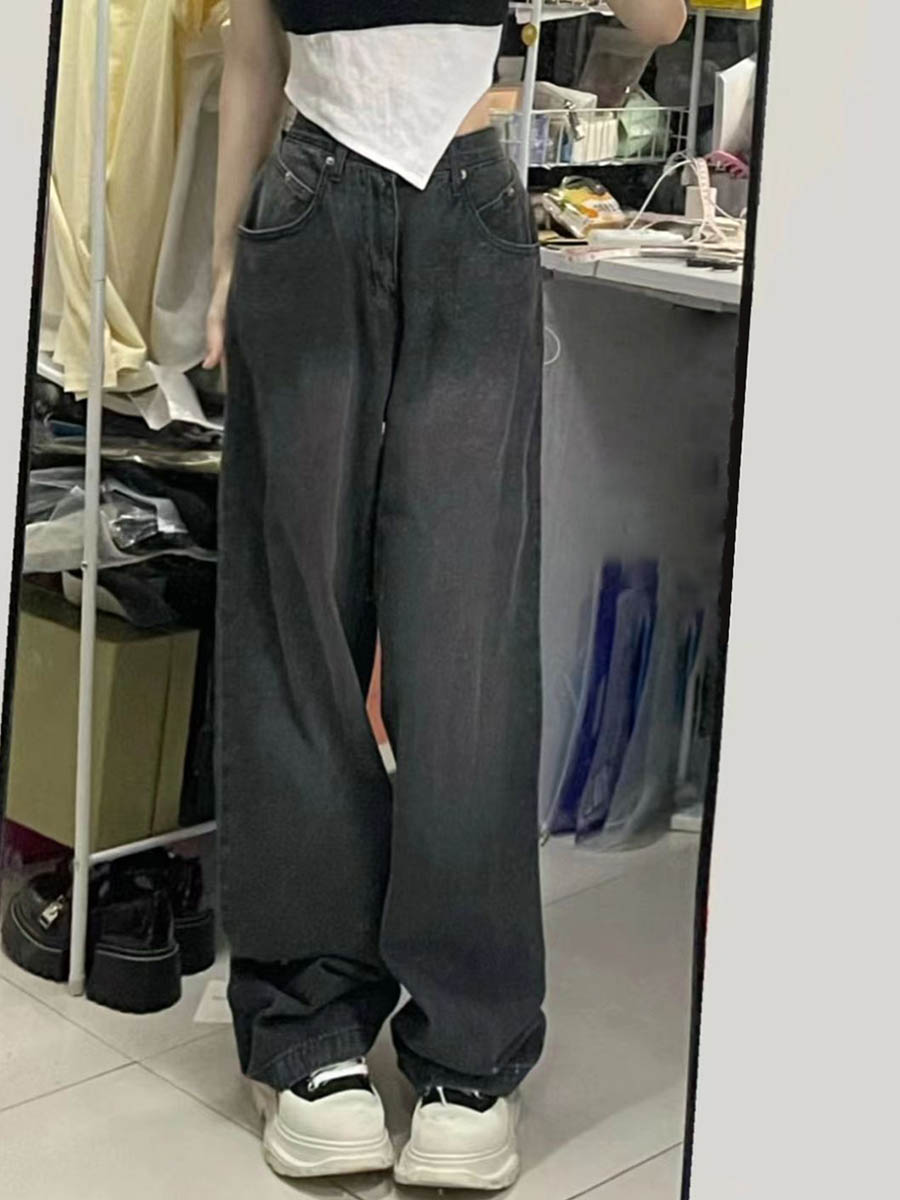 Spring and Autumn smoky gray jeans women's straight high waist plus size chubby girl pear-shaped slightly fat girl wear wide-leg pants