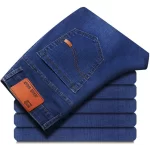 Spring and Autumn Stretch Middle-aged Business Thin Jeans