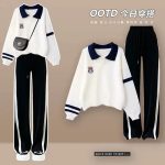 Spring and Autumn suit preppy style Polo collar sweater suit a set of 2022 casual sports wide-leg pants two-piece suit fashion
