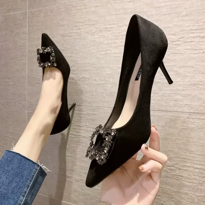| nameOriginal | Spring and autumn versatile new sexy girls' shoes Internet celebrity rhinestone French high heels women's stiletto professional pointed shoes |