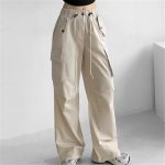 Spring and Autumn wide-leg overalls women's loose slimming drawstring ankle-tied pants American street high waist straight casual trousers