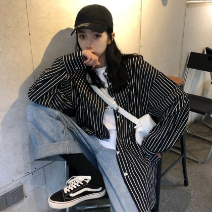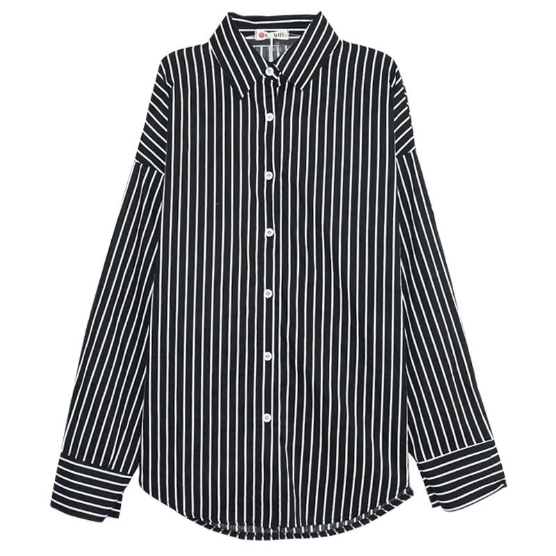 | nameOriginal | Spring and Autumn Women's Korean BF Style Loose All-match Striped Shirt Mid-length Long-sleeved Casual Shirt Top Trendy Coat |