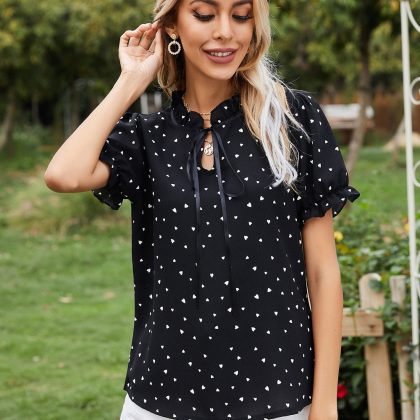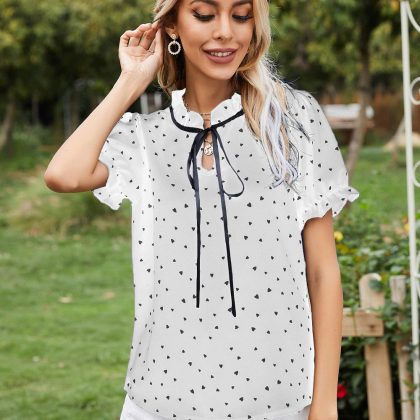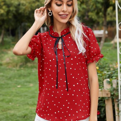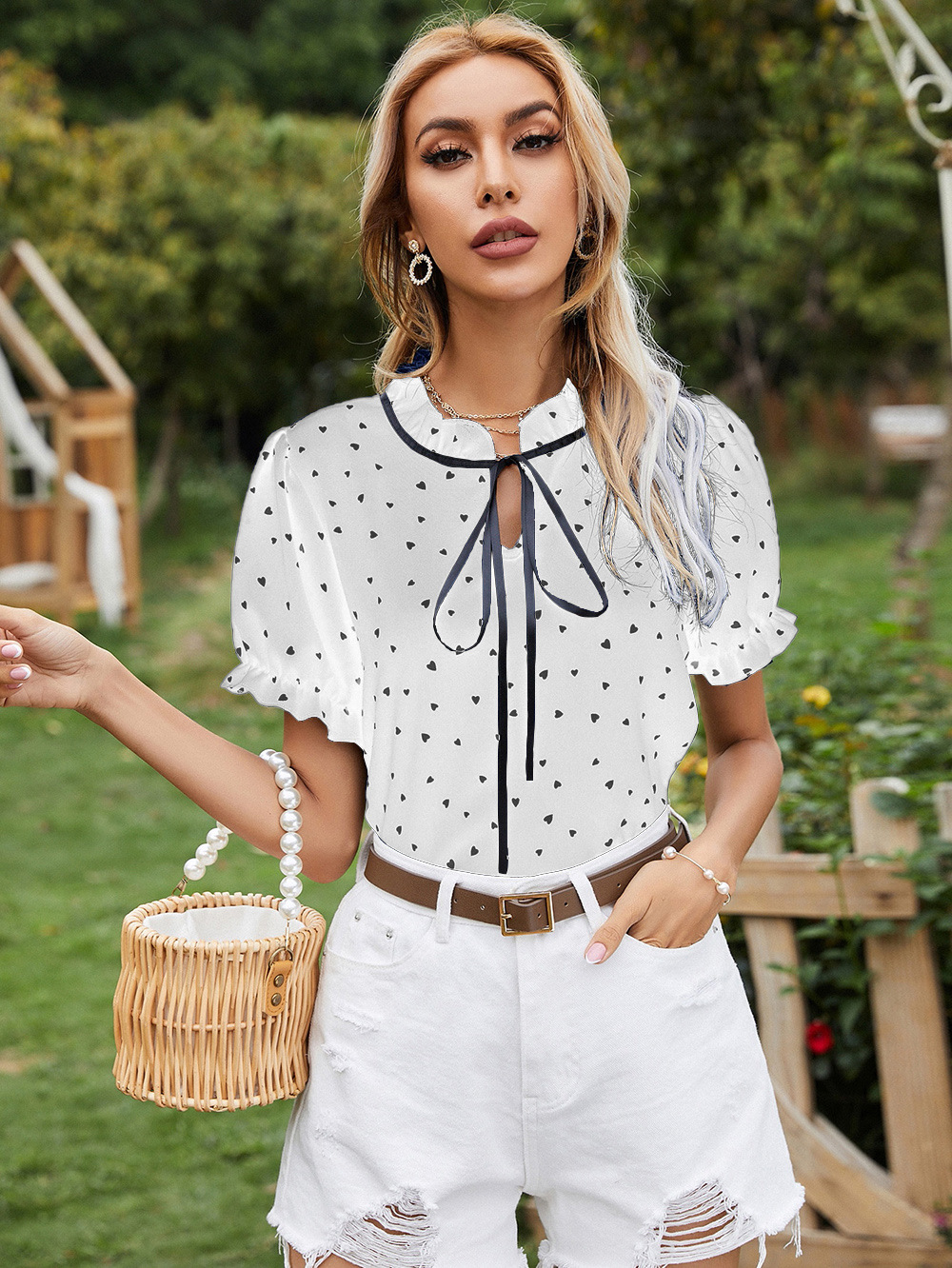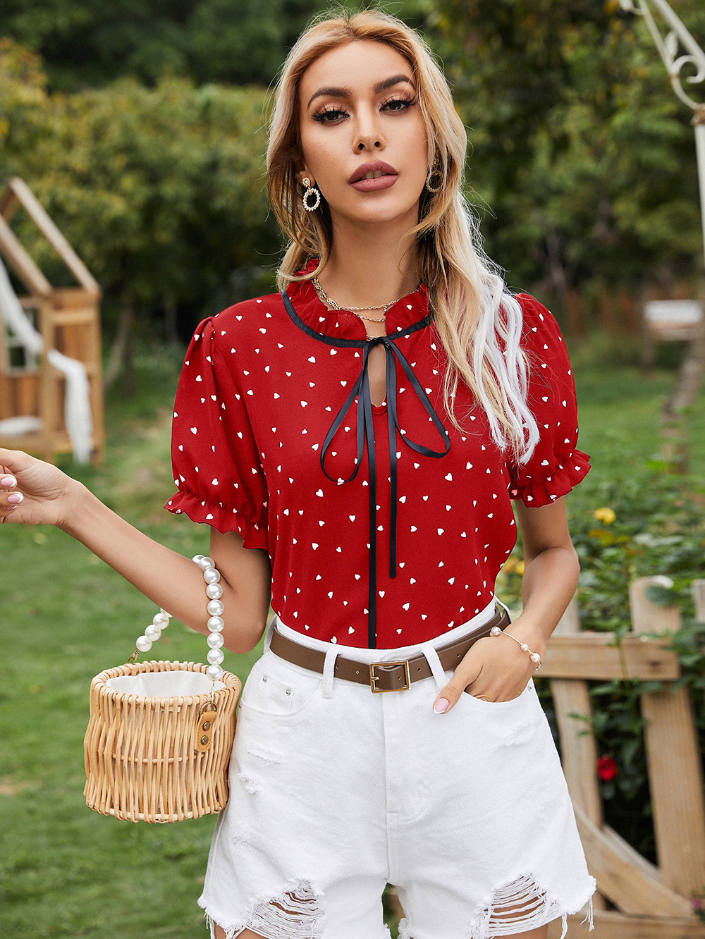 | nameOriginal | Spring and Summer 2022 European and American Independent Station Pullover Ruffled Chiffon Heart-shaped Printed Puff Sleeve Elegant Commuting Shirt for Women |