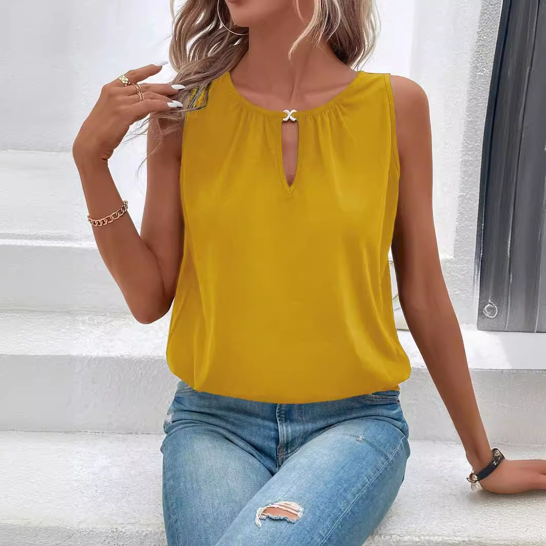 | nameOriginal | Spring and Summer 2024 Amazon Cross-border European and American Women's Fashion Elegant Design Personality Buckle Crewneck Solid Color Vest |