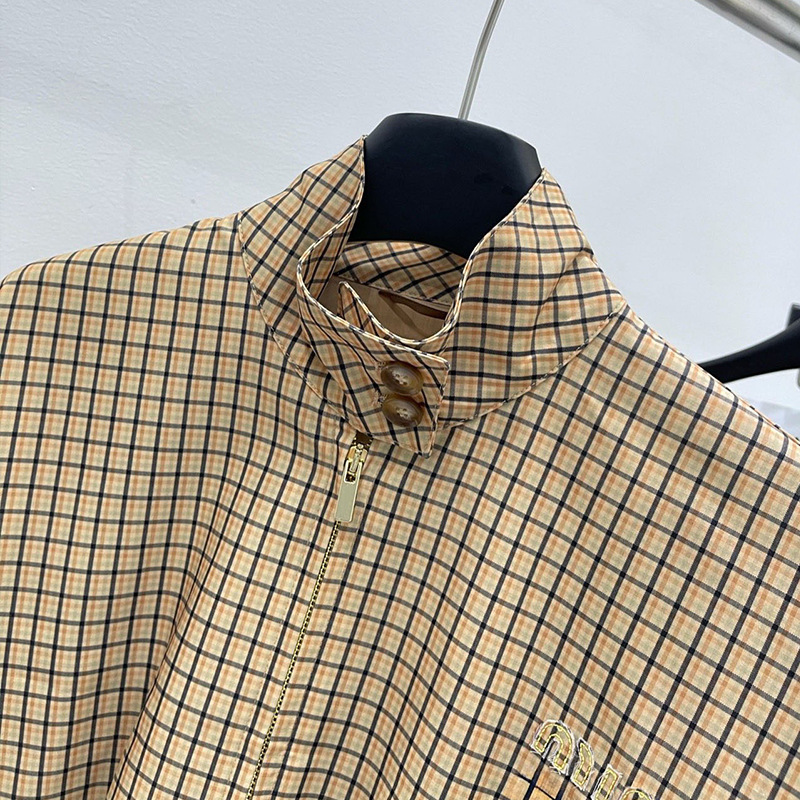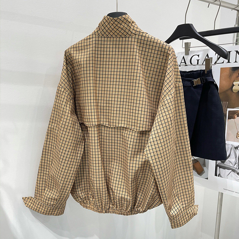 | nameOriginal | Spring and Summer 2024 khaki Plaid Letter Vertical Collar Zipper Jacket Coat Loose Slimming Fashionable Thin Top for Women |