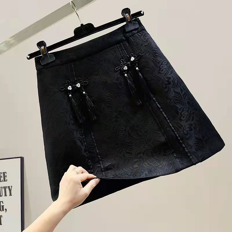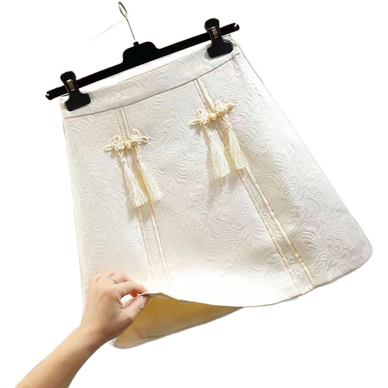 | nameOriginal | Spring and Summer 2024 New Chinese Style Skirt Women's Buckle Jacquard Heavy Industry High Waist Slimming Fashionable A- line Skirt for Small Women |