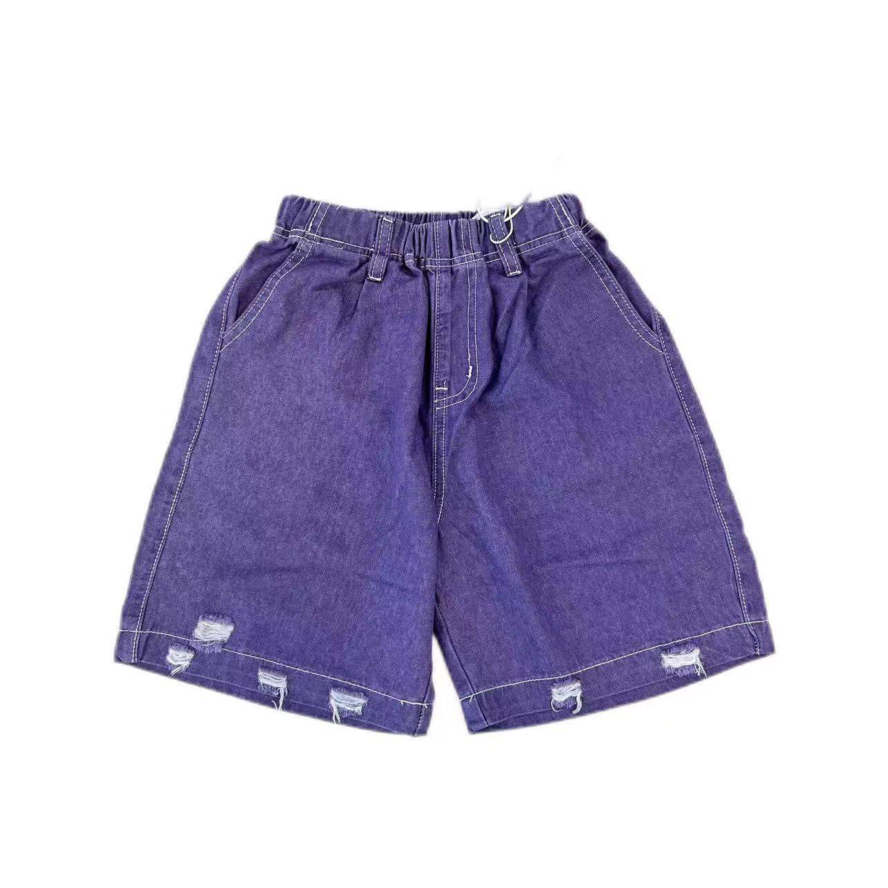 | nameOriginal | Spring and Summer 2024 New Japanese Fashionable Style Pants with Ripped Feet dark blue Purple Denim Wide-leg Shorts |