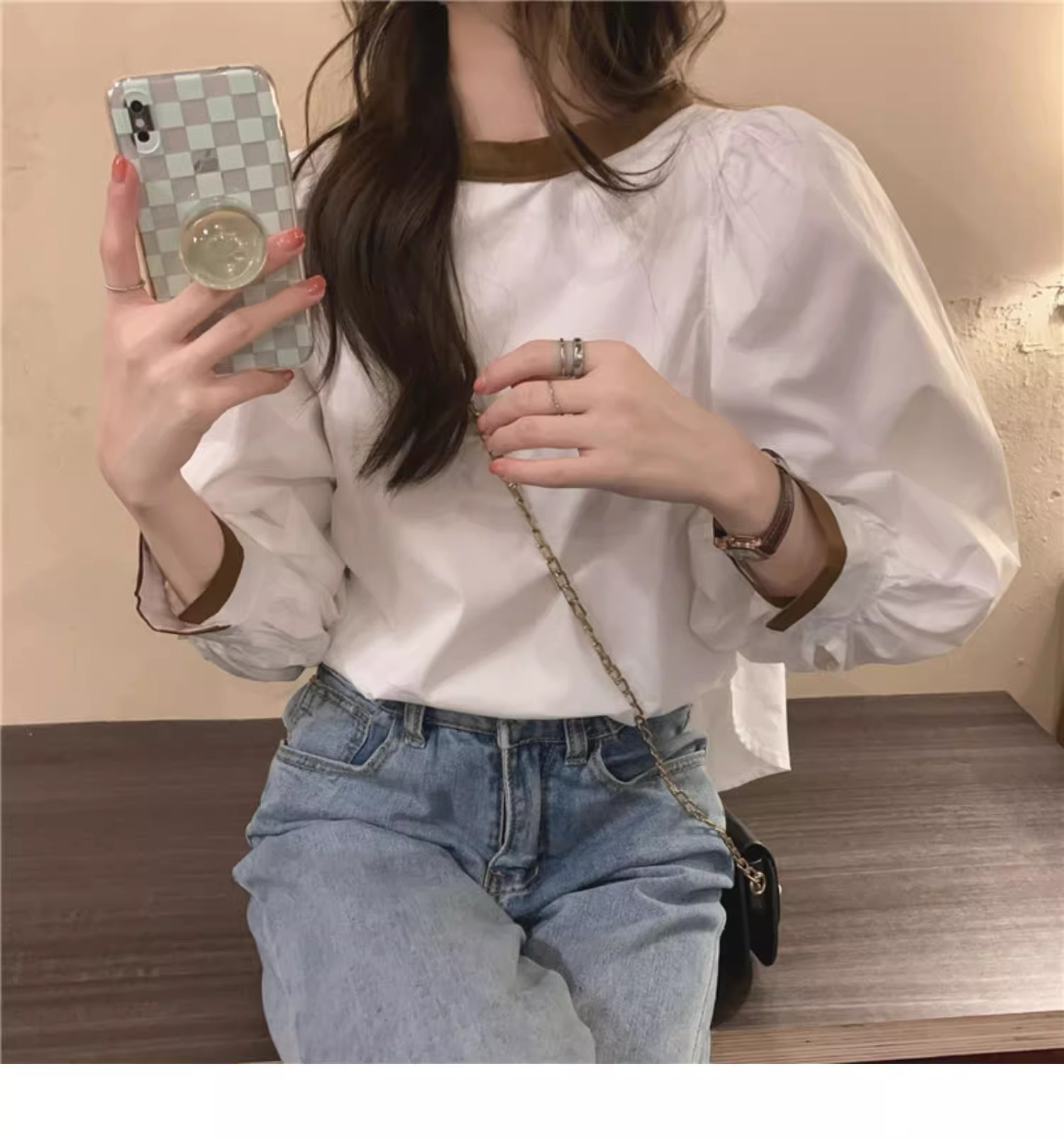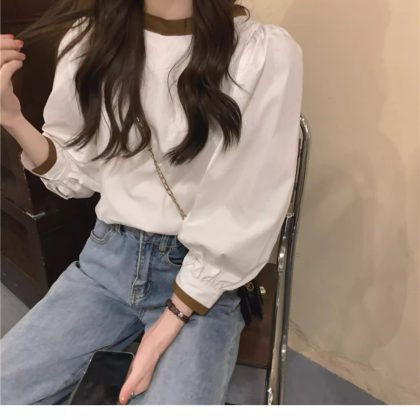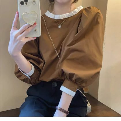 الربيع والصيف 2024 جديد الكورية نمط فضفاض النمط الفرنسي الرجعية طويلة الأكمام قميص تصميم تحسس أنيقة الدانتيل متابعة البلوز للنساء
