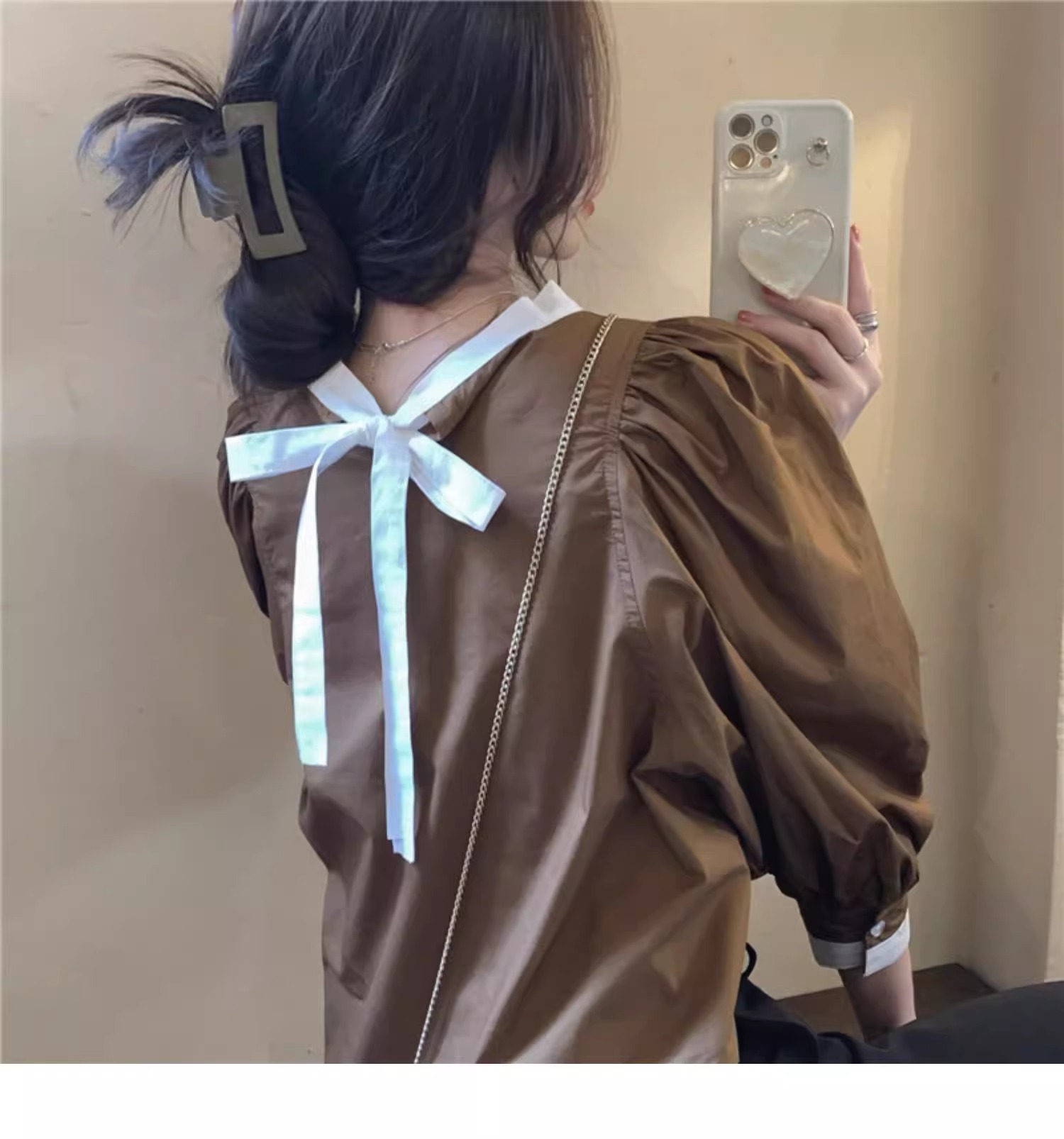 Spring and Summer 2024 New Korean Style Loose French Style Retro Long Sleeve Shirt Design Sense Elegant Lace-up Pullover Top for Women