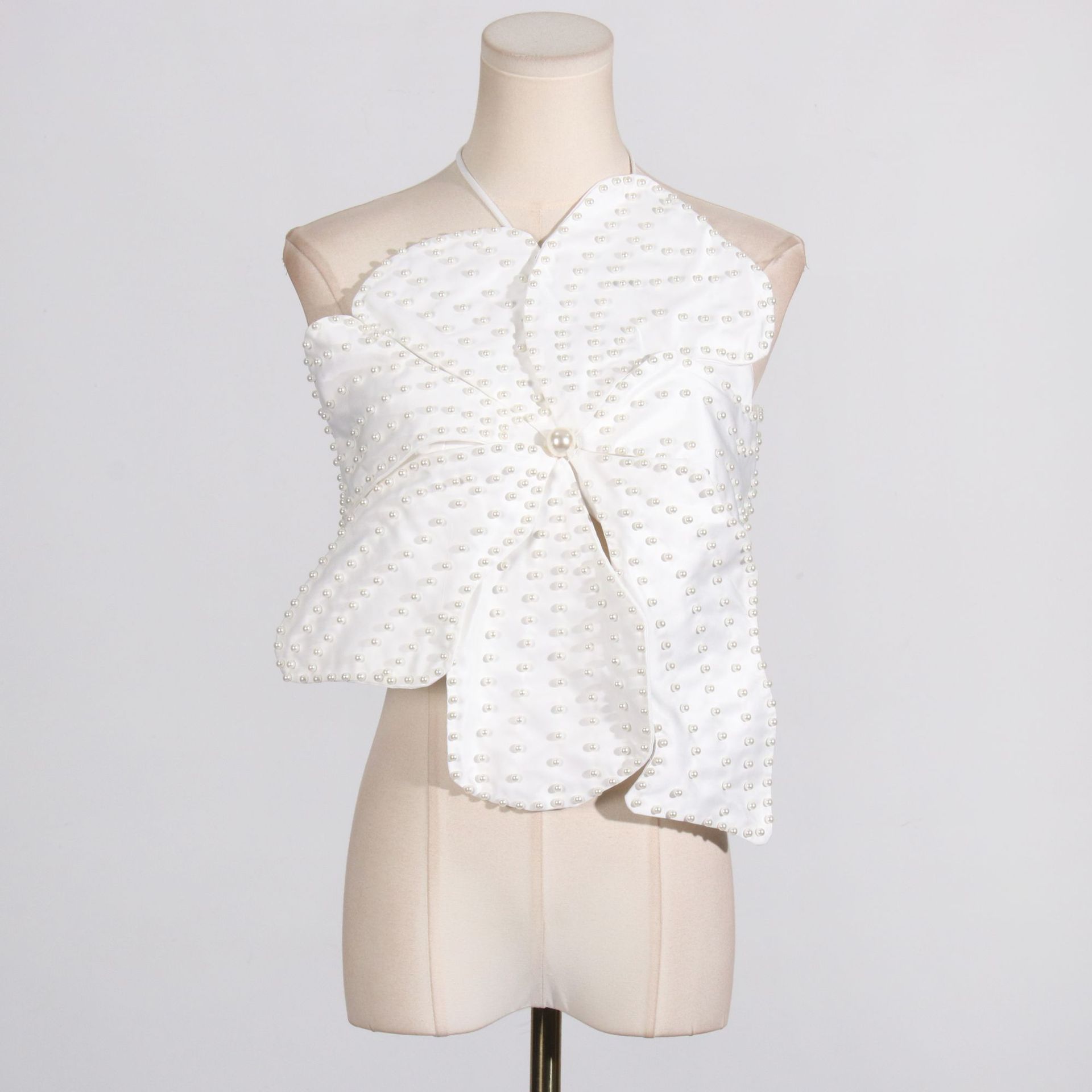 | nameOriginal | Spring and Summer 2024 New Sexy Pearl Inlaid Three-dimensional Flower Stitching Design Sense Hanging Neck Tube Top Women's Lace-up Top |