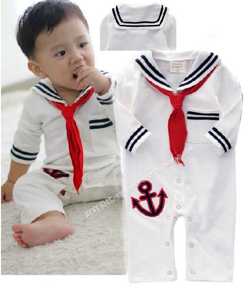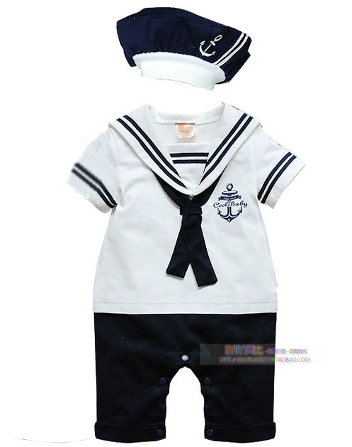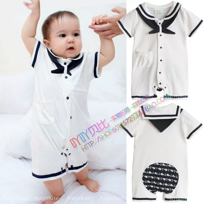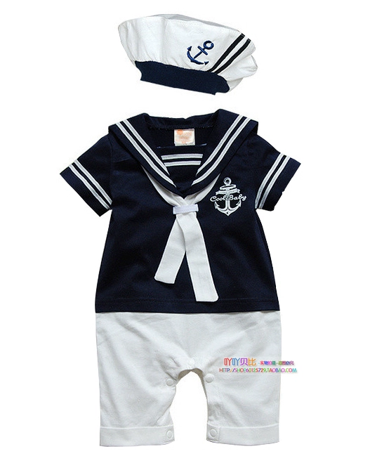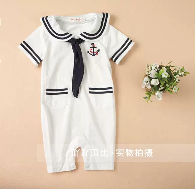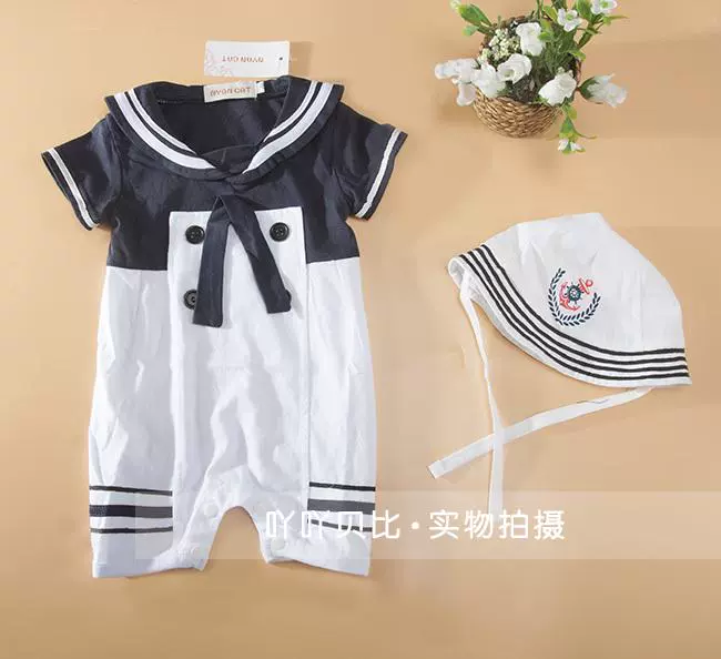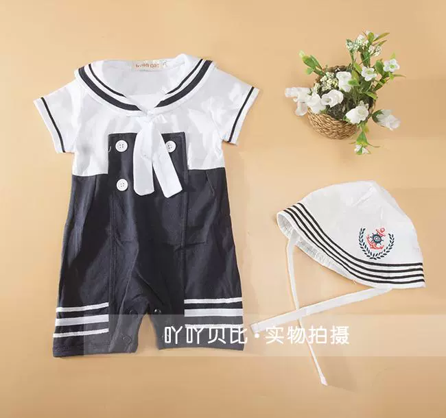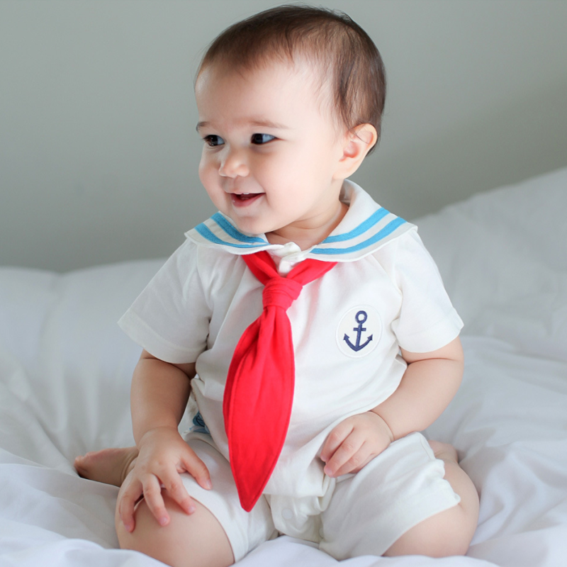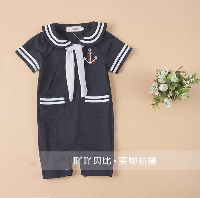 | nameOriginal | Spring and summer baby one-piece clothes for boys and girls, baby summer clothes, navy style short-sleeved one-piece clothes for full moon photos |