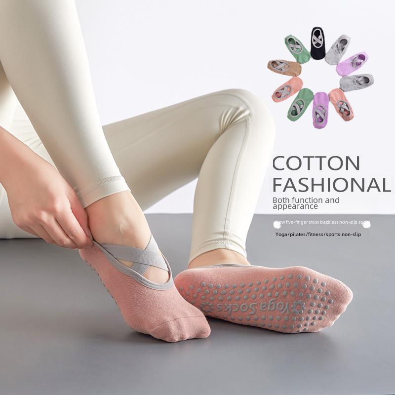 Spring and Summer backless non-slip yoga socks women's solid color cotton sweat-absorbent dance socks ins trendy fitness cross strap floor socks