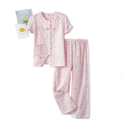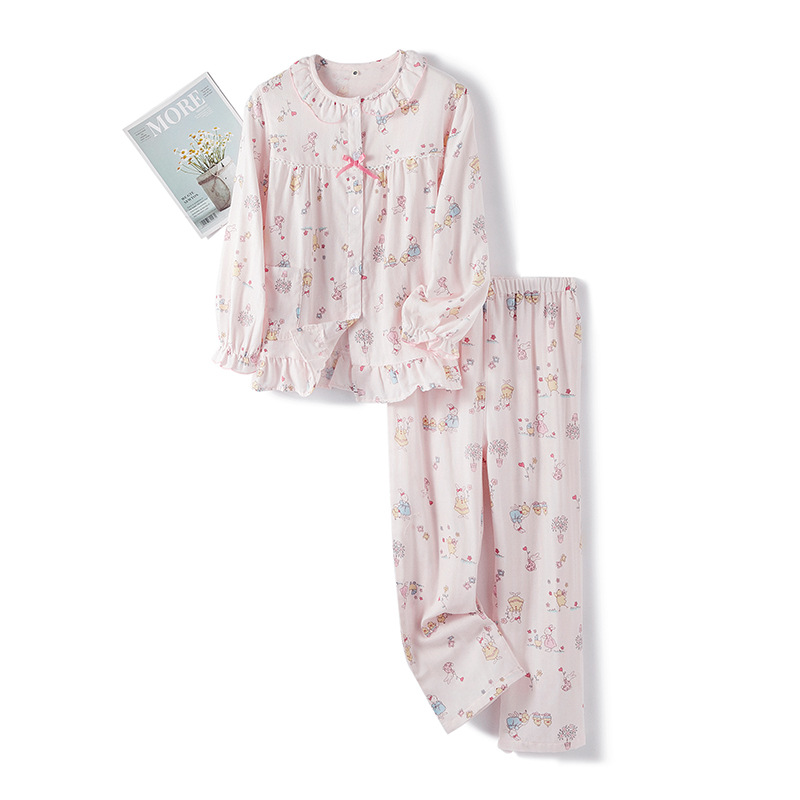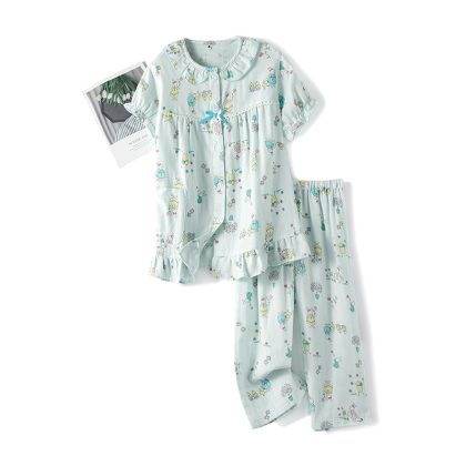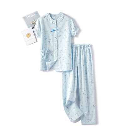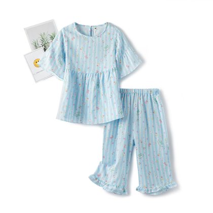| nameOriginal | Spring and summer cotton double-layer yarn for boys and girls cute cartoon long short sleeve long shorts pajamas home clothing set Wholesale |