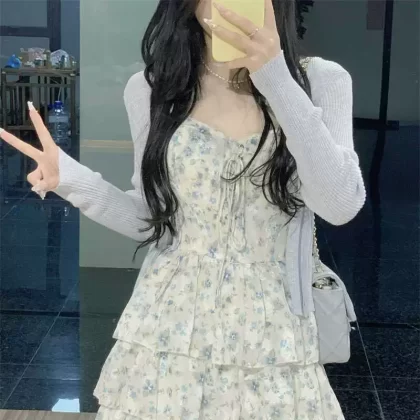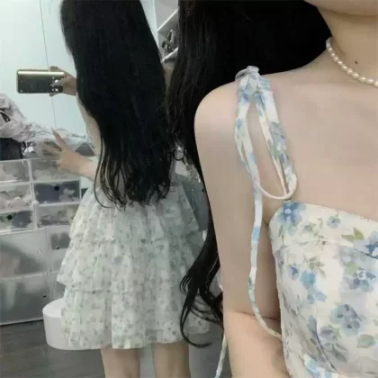 | nameOriginal | Spring and summer French tea style cake short skirt floral suspenders |