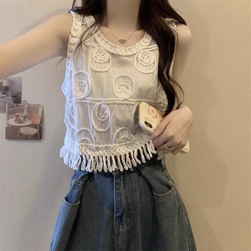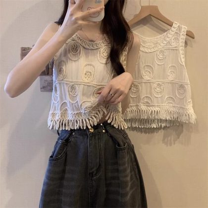Spring and Summer Hollow Women's Knitted Camisole Vest New Niche Design Blouse Loose Sleeveless Short Vest Top