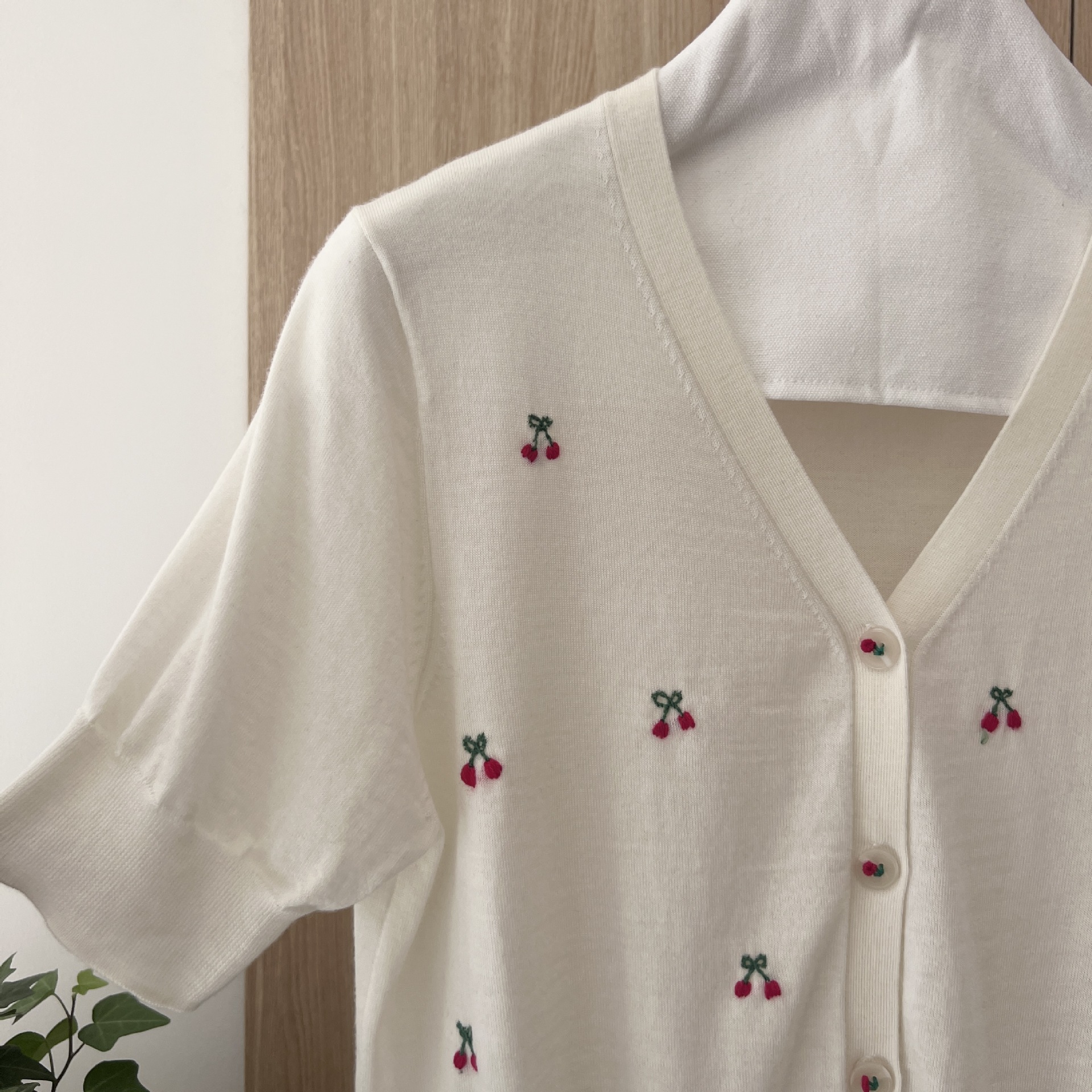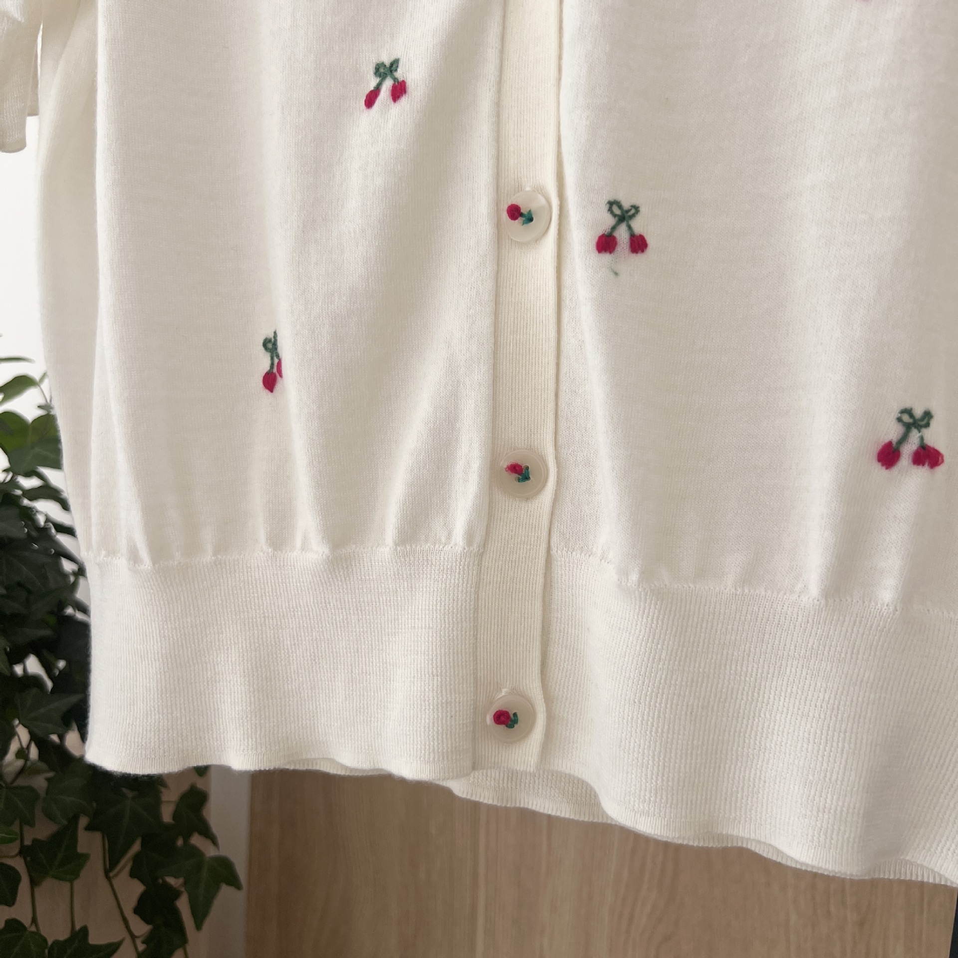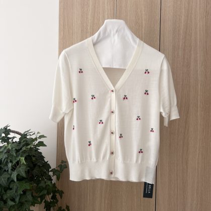 | nameOriginal | Spring and summer in stock new heavy cherry embroidery worsted wool V-neck knitted cardigan 8735 |