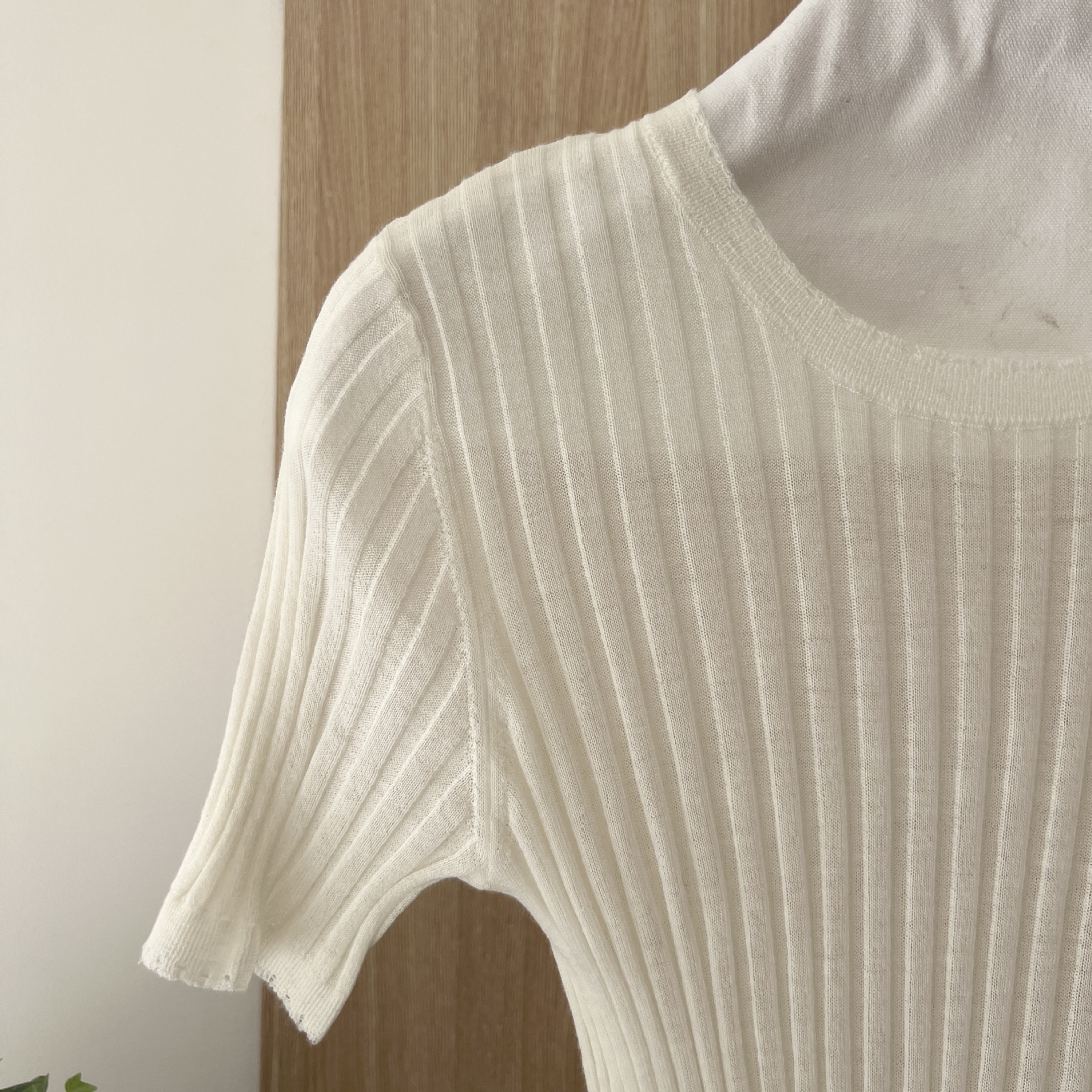 Spring and summer in stock new pit soft waxy burr short sleeve paper slimming sweater 8733