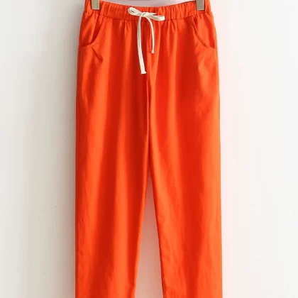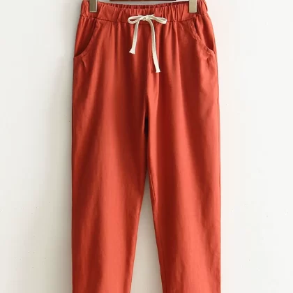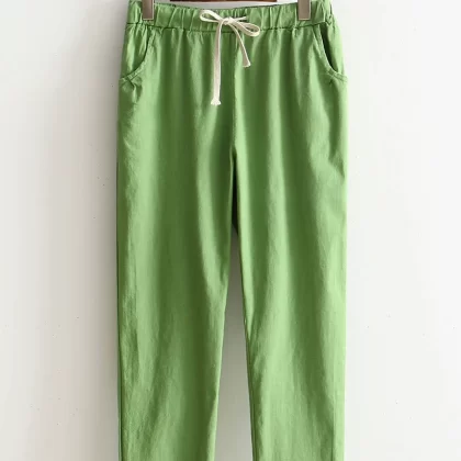 | nameOriginal | Spring and summer large size candy-colored washed cotton and linen women's pants, loose casual pants, nine-quarter pants, harem pants, versatile petite pants |