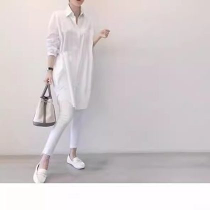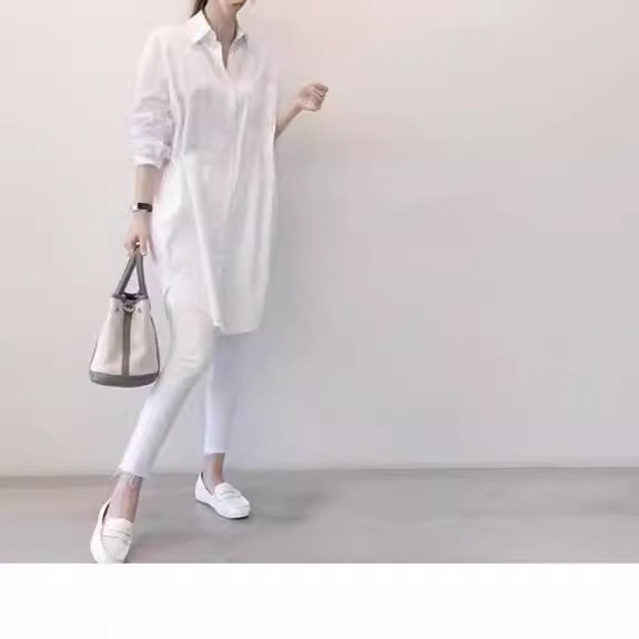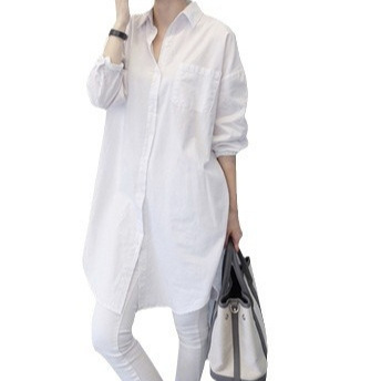 Spring and Summer Long Shirt Dress Loose Casual Base White Shirt Female Student Coat