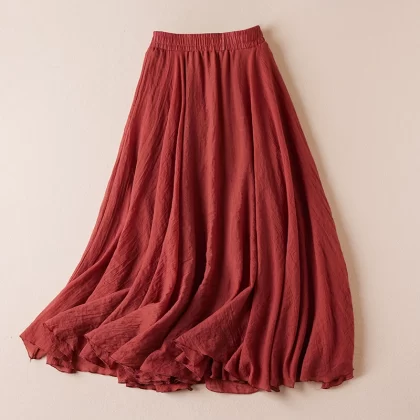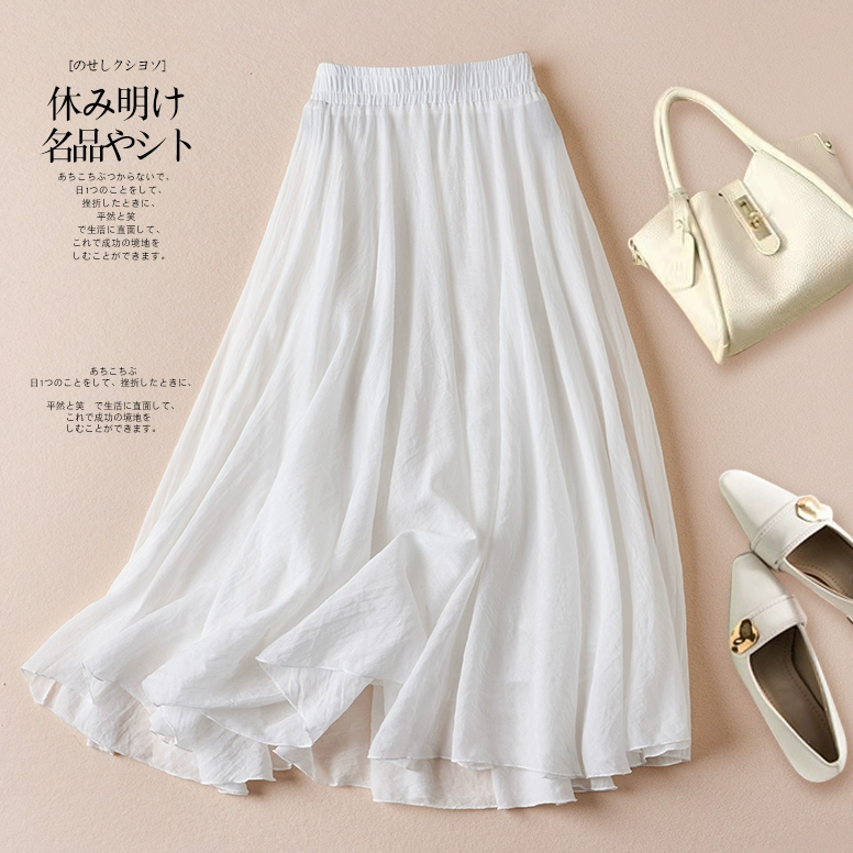 | nameOriginal | Spring and summer loose cotton and linen pleated A-line skirt with big swing and art |