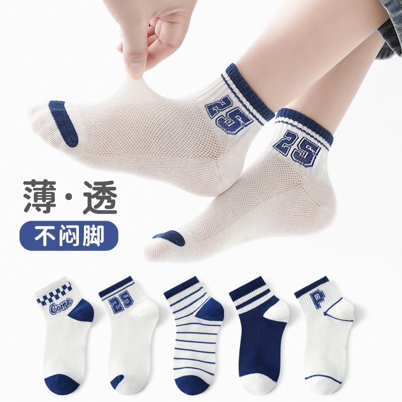 Spring and Summer Mesh Thin Children's Socks Korean Style Digital Striped Boys Socks Large Children's Socks Student Sports Socks