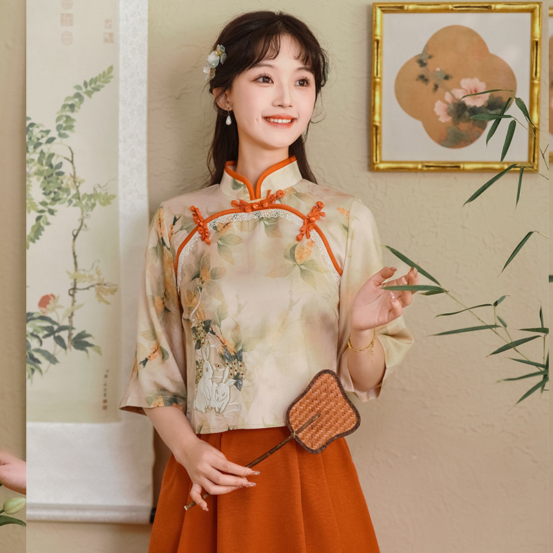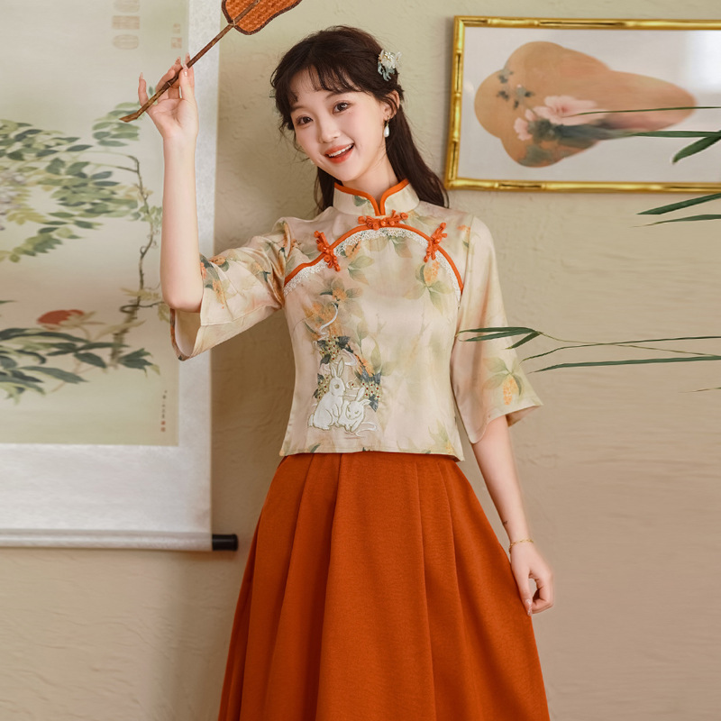 | nameOriginal | Spring and Summer new Chinese retro National style cheongsam top embroidered printed Tang suit improved Hanfu tea suit suit women |