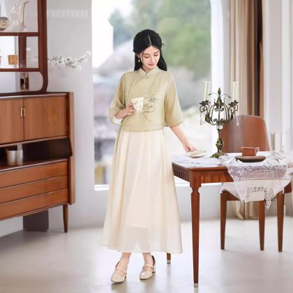 | nameOriginal | Spring and Summer New Chinese Style Girl Young Guofeng Button Cheongsam Two-piece Set Daily Girl Fashion Hanfu Two-piece Suit |