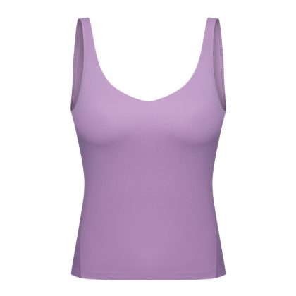 Spring and Summer New Sexy V-neck Sports Vest Women's Stretch Slim-fit Long Yoga Clothes with Chest Pad