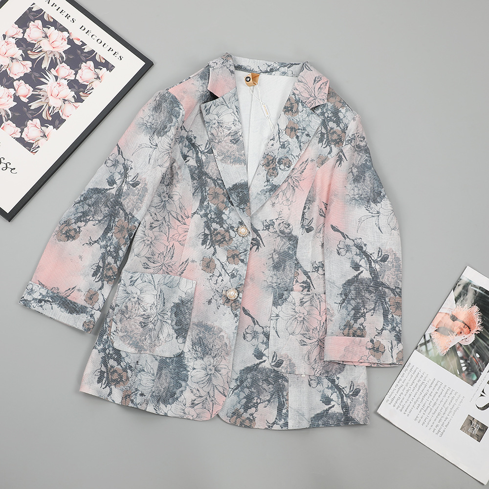 | nameOriginal | Spring and Summer New Suit Jacket Women's Ink Painting Printed Seven-point Sleeve Thin Light Luxury Elegant Casual Commuter Suit |