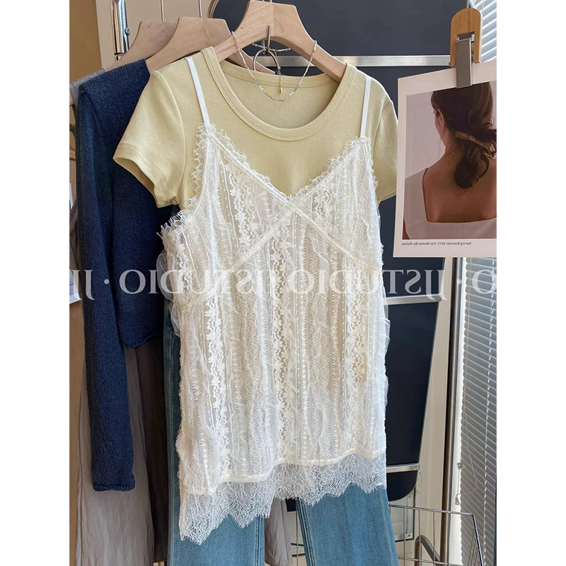| nameOriginal | Spring and summer pure lust style heavy industry suspenders outer blouse with crochet pattern |
